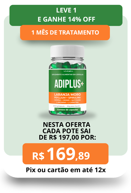 Adiplus contém em sua composição ingredientes naturais ricos em fibras que irão proporcionar rapidamente a sensação de saciedade, contribuindo para reduzir aquele mal estar de estômoago alto. Tudo isso sem causar problemas de saúde ou desconfortos.